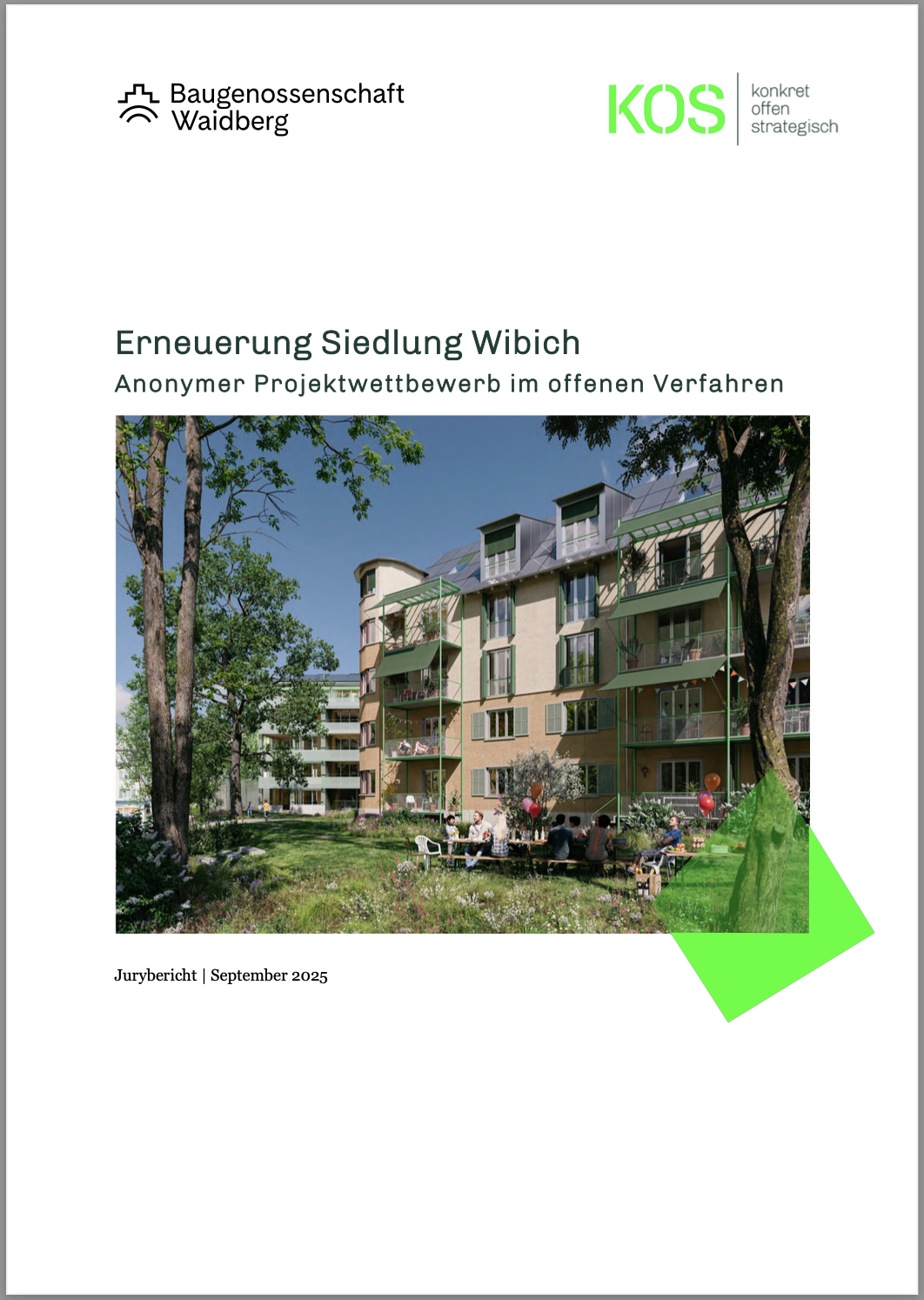 Die älteste Siedlung «Wibich», der Baugenossenschaft Waidberg, soll erneuert werden. Das sehr gut erschlossene Grundstück weist hohen Sanierungsbedarf und gleichzeitig Ausnützungsreserven aus. Mit der Erneuerung der Siedlung will die BGW 75 – 90 Wohnungen sowie Angebote für gemeinschaftliche Nutzungen erstellen. Das Projekt soll möglichst vielen Bewohnenden preiswerten Wohnraum bieten. KOS unterstützt bei der Durchführung und Organisation des zweistufigen Projektwettbewerbs im offenen Verfahren.